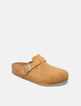 The Women's Birkenstock Boston clog made with corduroy uppers, now in cork brown, is a timeless favourite you can rock no matter the season. Thanks to an extra foam layer, the soft footbed swoops in with all-day coziness that your feet will thank you for. Its naturally stylish look comes from the super-soft suede upper that wraps your foot like a cozy little hug.