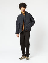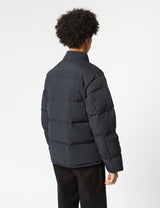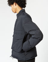 The Snow Peak Recycled Down Jacket is a technical winter layer that features a water-repellent outer shell constructed from 100% tent-recycled nylon ripstop with a DWR finish, and recycled down filling from the Green Down Project, making it a sustainable option.