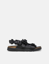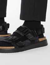 Introducing Birkenstock Men's Corky Shinjuku Sandals - a stylish and playful addition to your summer wardrobe. The unique blend of materials and contemporary closures, paired with the bold outer sole, make these sandals a total showstopper.