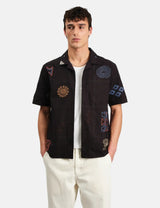 Wax London Didcot Short Sleeve Doodle Shirt - Navy Blue/Multi