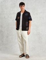 Introducing the newest version of the Wax London Didcot short-sleeve shirt for SS25 - now with a playful twist! This ecru shirt boasts a breezy, relaxed fit and a unique doodle embroidered design.