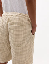 These Universal Works waffle-textured shorts in driftwood beige have an elasticated waist, two front pockets, and two rear patch pockets. They're perfect for summer days, whether you're lounging by the sea or grabbing a drink at the bar.