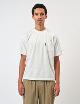 The Snow Peak NSD Pocket t-shirt in classic white is your trusty everyday tee with a twist. Rocking a ribbed collar and a handy chest pocket, it’s simple but smart. Plus, a cheeky printed logo on the sleeve gives it that extra splash of style to keep things fun and fresh.