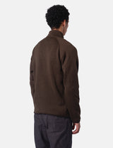 Introducing the Patagonia Better Sweater jacket made in otter brown. Sustainably made in a Fair Trade Certified factory, this soft, full-zip jacket is the perfect blend of sweater-knit style and Better Sweater fleece practicality. It's fabric is infused with low-impact dye, saving on resources compared to traditional heather dyeing methods.