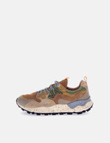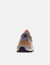 With a sporty vibe, the Flower Mountain Yamano 3 in grey, light brown and beige brings a fresh twist to city style. Its technical fabric and suede mix flaunt signature perforations, while reinforced eyelets and trekking laces add an adventurous edge.