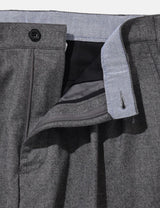 Introducing the Beams Plus 2 Pleats tapered flannel in grey: These trousers, a wool flannel take on the popular "Beams Plus 2-pleat Chino Trousers", have slightly thicker fabric and a relaxed stretch for maximum comfort.