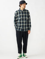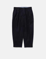 Introducing the Beams Plus 2 Pleats tapered flannel in navy blue: These trousers, a wool flannel take on the popular "Beams Plus 2-pleat Chino Trousers", have slightly thicker fabric and a relaxed stretch for maximum comfort.