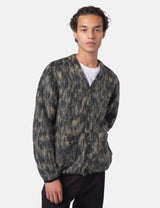 This beloved Universal Works cardigan gets a cosy upgrade in charcoal Dolce fleece. Featuring a button-up front with neat self-binding, it’s got three handy patch pockets outside and a sneaky one inside. Finished with comfy cotton ribbed cuffs and hem for that just-right fit.