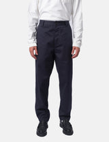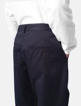 Spice up your wardrobe with the Universal Works Military Chino in navy blue, crafted from comfy cotton twill. A modern, multi-purpose pant, this versatile chino is a staple for any outfit with a regular fit and tapered leg. (Did we mention how great it looks on?)