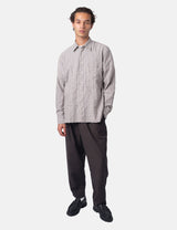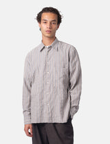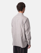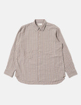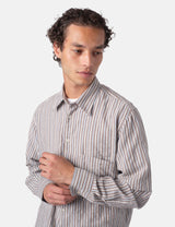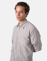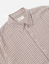 The Universal Works Station Shirt in brown Madison stripe brings a fun twist to your casual wardrobe.