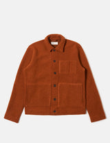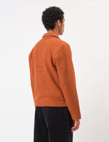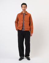 The Universal Works Uniform Jacket in warm rust orange brings together workwear vibes and contemporary menswear charm. This cropped, boxy jacket features handy patch pockets and a straight hem that hits right at the waist, making it a fun and functional addition to your wardrobe.