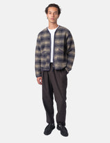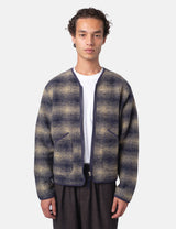 The Universal Works Zip Liner Jacket (Uist Fleece) in navy blue brings a relaxed, military-inspired vibe. This easygoing jacket features an unstructured fit, a bold exposed zip, and two slanted patch pockets at the hips. Finished with cozy cotton rib detailing and a handy two-way zip front, ready to zip up your look with a playful twist.