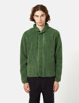 Ein superweiches Teddy-Fleece mit Baumwollbesatz an den Nähten, Knopfverschluss und mit einem stylischen Schalkragen, der hoch oder runter getragen werden kann.