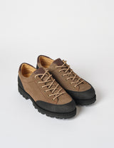 Paraboot Montana Boots in brown suede uppers, drawing inspiration from 1970s climbing shoes. Designed with rubber-coated strips at the front and back, they offer enhanced grip on challenging surfaces.