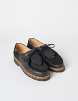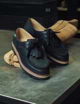 Universal Works and Paraboot join forces, grounding their collaboration in honesty and meticulous craftsmanship. Presenting the Paraboot x Universal Works Michael Shoes in sleek black.
