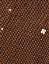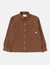 Meet the Heresy Deft Shirt in a vibrant orange hue. This collared shirt is crafted from 100% cotton check fabric and includes a handy breast pocket, plus a quirky printed 'Arch' flag label. Designed with a relaxed boxy fit and finished with charming wooden buttons, it adds a fun twist to your wardrobe.