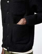 A stand out piece from Universal Works, this button through cardigan comes in black wool fleece. Ideal for layering in the colder months, featuring two front pockets, one chest pocket and higher neck detail. One of the most popular Universal Works outerwear pieces.