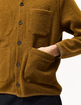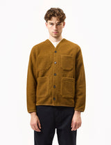 A stand out piece from Universal Works, this button through cardigan comes in mustard wool fleece. Ideal for layering in the colder months, featuring two front pockets, one chest pocket and higher neck detail. One of the most popular Universal Works outerwear pieces.