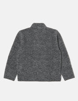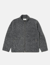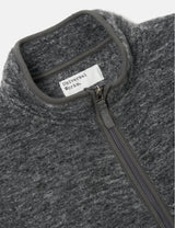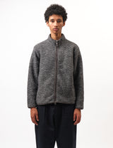 The Grey Teddy Fleece Climbing Jacket by Universal Works: a cozy wool mix jacket with a zip-up funnel neck, perfect for those looking for the sleeved version of the Universal Works Climbing Gilet.