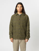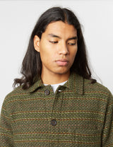 The woollen Field jacket in olive green from Universal Works, step into winter with the with this rug stripe workwear style jacket!