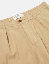 These summer oak Universal Works Pleated Track Pants are perfect for casual summer days, thanks to their loose fit, elasticated waist and tapered design. Made from lightweight cotton with a subtle irregular seersucker texture, these pants offer both style and comfort.