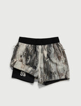 Experience the ultimate in running comfort with the RCOS Griffith Running Shorts in tree bark graphic. This innovative 2-in-1 design combines a supportive compression under layer with a lightweight nylon ripstop outer, delivering the perfect balance of performance and durability.