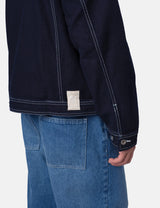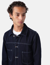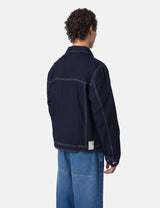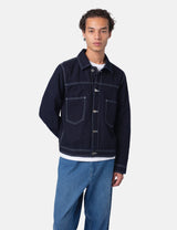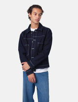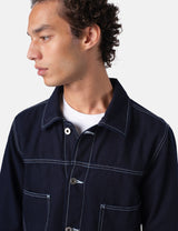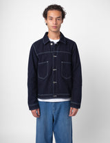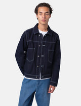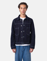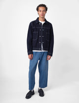 Meet the Bhode Denim Jacket in deep indigo blue. Featuring eye-catching contrast stitching, a classic trucker cut with a modern spin, and a relaxed boxy fit. It’s styled with handy patch pockets, a button-up front, and finished off with our signature white label for that extra charm.