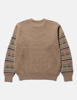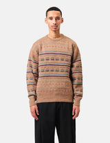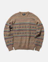 The Beams Plus Jacquard stripe knitted woollen crew in brown is your cozy companion for chilly days. This wool and mohair blended sweater is guaranteed to keep you warm this winter, perfect for layering up with a wink of style this winter.