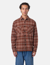 Bhode Zennor Check Over Shirt (Flannel) - Rust/Brown