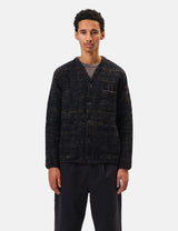 The Universal Works Marble Fleece Cardigan comes in a cool navy blue shade. This timeless favourite features a neat button-up front and three handy patch pockets on the outside, plus a secret fourth pocket inside. Finished with comfy cotton ribbed cuffs and hem, it’s perfect for adding a cozy touch with a dash of style.