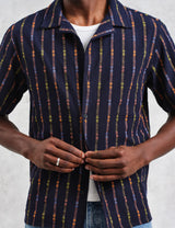 Wax London Didcot Short Sleeve Shirt (Loom Stripe) - Navy Blue/Orange