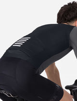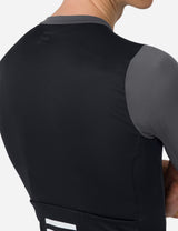 Rapha's Pro Team Training Jersey in dark grey and black is the ultimate performance top for long rides. Created with input from EF Pro Cycling's top riders, this jersey combines two materials to keep you comfortable in mild to hot weather. The front-body fabric from Italy provides excellent stretch for a perfect on-bike fit.
