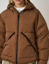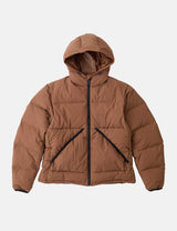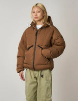 Inspired by vintage mountaineering style, the Gramicci Down Puffer Jacket in brown is your ultimate cold-weather companion. Featuring a smooth nylon exterior and cozy down filling, it’s snug, warm, and comfy.