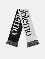 The iconic No Problemo scarf comes in black with striking white details. Inspired by vintage football style, it sports bold script lettering and fun fringed edges for that extra flair.