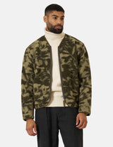 Meet the Universal Works Studio Fleece Zip Liner Jacket in a fun green and pale green camo design. This relaxed, army-inspired jacket is unstructured for easy layering, featuring a visible zip and two handy patch pockets for all your essentials.