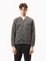 A stand out piece from Universal Works, this button through cardigan comes in grey marl wool fleece. Ideal for layering in the colder months, featuring two front pockets, one chest pocket and higher neck detail. One of the most popular Universal Works outerwear pieces.