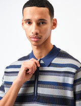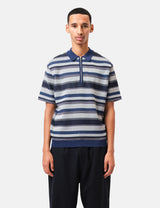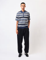 Beams Plus Half Zip Knit Polo Shirt - Navy Blue