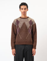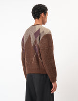 Elevate your knitwear collection with this luxuriously textured crewneck sweater. The Coor combines sumptuous brushed alpaca blend yarn with an eye-catching colour-blocked argyle motif, delivering both visual interest and tactile comfort.