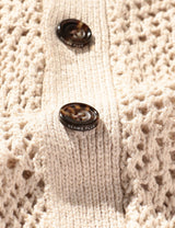 The Beams Plus Argyle Mesh Cardigan in beige. Another heritage style knitwear piece from Beams, made with an allover mesh knit with a argyle pattern throughout. The attention to detail is outstanding, finished with Beams branding button placket, two front pockets and ribbing on the hem and cuffs.