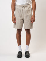 Prepare for your next expedition with these Bhode fatigue shorts in cornish stone, crafted from robust duck canvas. Designed for durability and comfort, they feature relaxed fits and traditional square front pockets.