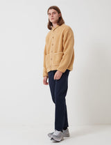 非常に柔らかいテディ フリースで、縫い目にコットン トリムのディテールが施され、ボタンで留められ、上下に着用できるスタイリッシュなショール カラーが付いています。
