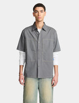 The Larriet Cliff short sleeve shirt in charcoal grey provides a laid-back look and includes a traditional collar with a stand. It's made from a breathable blend of cotton and lyocell with standout contrast stitching.