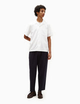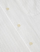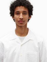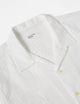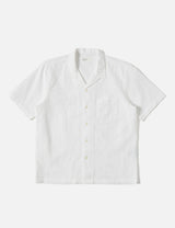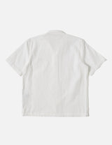 Introducing the Universal Works Road Shirt in white - a fuss-free, short-sleeved summer staple. Designed for a laid-back 50's vibe, this top can be worn open or buttoned up thanks to its unique loop closure. Made from top-grade cotton, its 70s-inspired dobby weave adds a touch of charm while keeping you cool as a cucumber. Trust us, this fabric gets even better with age. 100% cotton, irresistibly crisp and cool.