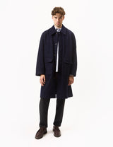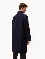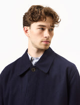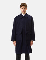 Get ready to meet your new favourite coat - the Universal Works Account Coat (Melton) in Navy Blue! This long winter coat, made with melton wool, is both stylish and functional. It boasts two large flap close pockets, concealed button closure, and a soft polyester lining.