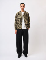 This Universal Works Cardigan features a playful studio pattern in green. A signature piece, it sports a neat buttoned front with self-bound edges, plus three outer patch pockets and an extra one inside for your little treasures.