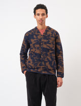 Universal Works Cardigan (Studio Fleece) - Navy/Brown