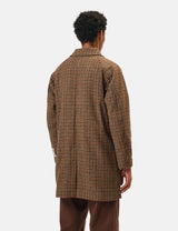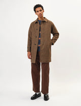Beams Plus Balmacaan Collar Harris Tweed Coat - Gun Club Check Brown