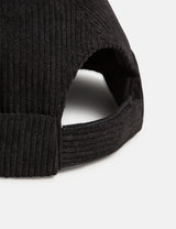 Crafted from corduroy, it features adjustable velcro fastening at the back for a perfect fit