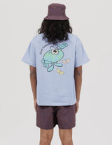 Embrace the Potato Head Eco Friends-Bli Made t-shirt in a refreshing watery blue. Featuring vibrant silkscreen prints of Potato Head’s iconic Bli Made and Bumi characters, this tee serves as a stylish and meaningful reminder that enjoying good moments supports a greater good.