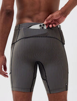 Experience Bandit's iconic Next Gen Half Tight fit, now refreshed with our ribbed Striped Cadence fabric and an improved gusset for an even better feel. These 7" pocket tights pack seven pockets: two waterproof-lined thigh pockets for your iPhone, four gel-sized ones at the back waistband, plus a zippered stash pocket on the back yoke.